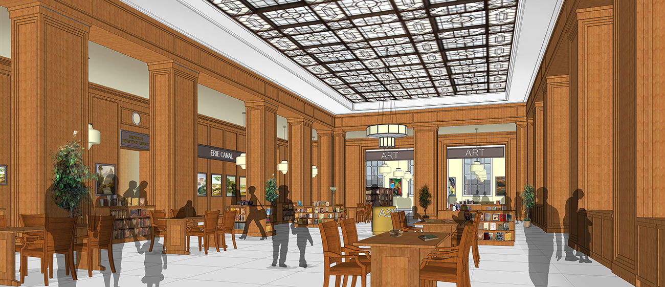 Bostwick Design Partnership was contracted in collaboration with June Garcia to create a comprehensive, multi-year plan for program reallocation and renovation of the Central Library of the Rochester Public Library & Monroe County Library System. The plan allows for improved facility efficiency and use, desired enhancements to patron services, as well as consolidation of public service access and staffing points throughout the building. The intent of the plan is to allow the Central Library facilities to support the shift from a collection-based to a learning-based library.