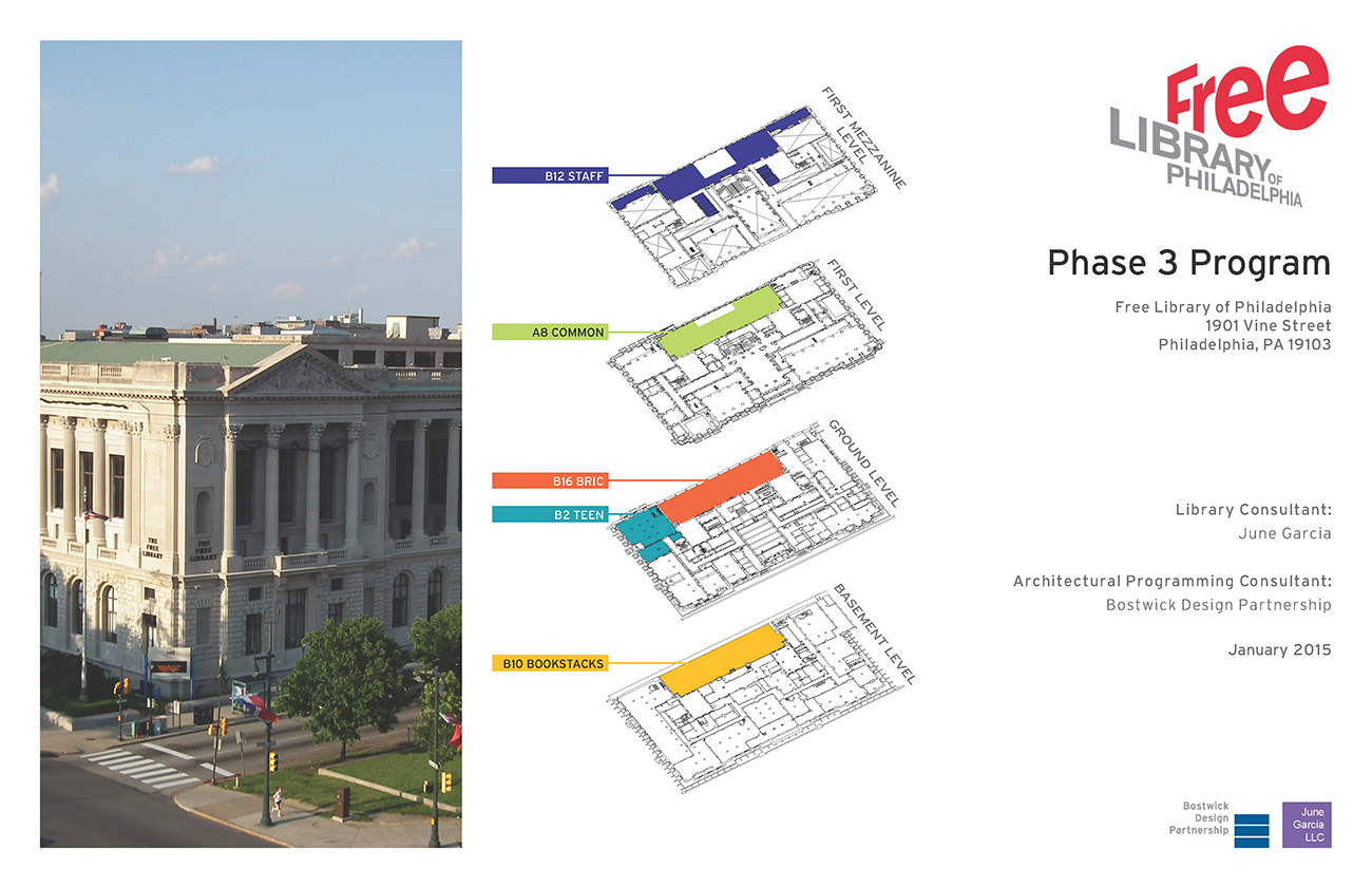 In October of 2014 the Free Library determined that a detailed program document was required to guide the design architect with best practices for library planning for each affected component. June Garcia LLC, teamed with Bostwick Design Partnership were asked to advance the Master Plan programming to create this new document. The goals of the Phase 3 Functional Program were to: