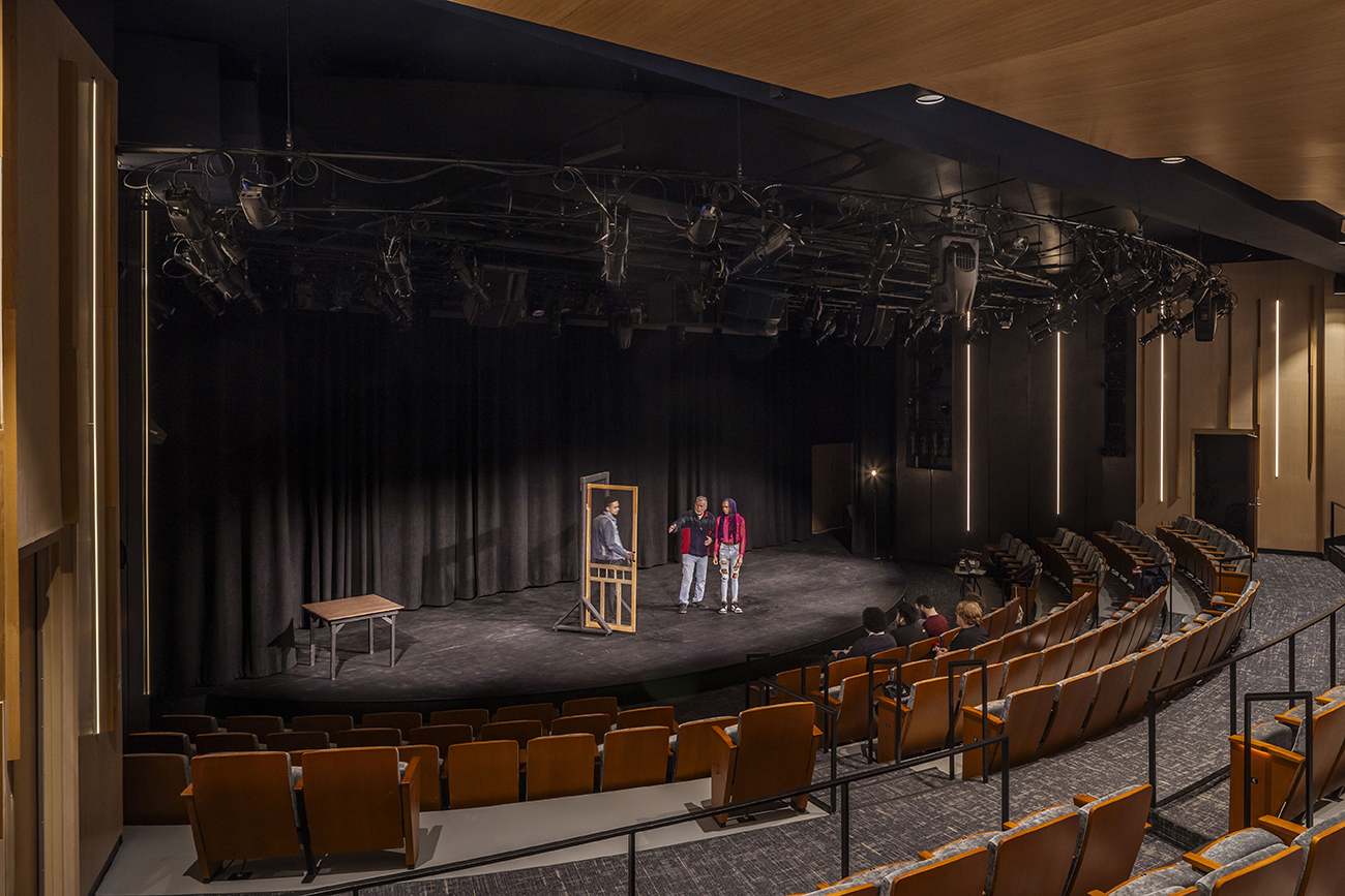 In addition to the main space, the project also reallocates space backstage to create improved dressing rooms, storage, and circulation as well as a new scene shop that can flexibly provide extended stage depth when needed. The control room is enlarged to provide independent lighting and audio control stations.